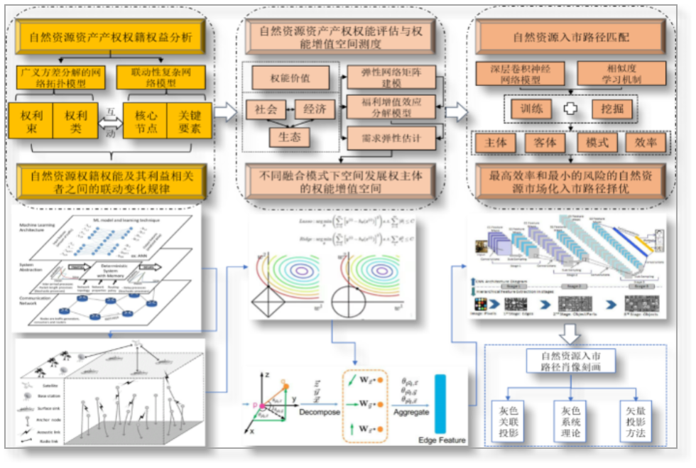 以公共管理学权籍理论和经济学产权理论为基础,利用社会学复杂网络分析、统计学大数据挖掘、人工智能深度学习等方法,构建自然资源要素“权籍权益-权能增值-入市路径”的市场化机制优化分析框架,探究设计最优化自然资源要素市场化机制。